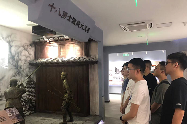 随后,志愿者们来到了夏庄村党群服务中心,参观学习夏庄村新农村建设,了解夏庄村革命先辈的光荣事迹,并交流汇报了学校迎接建党百年开展党史学习教育的相关情况。