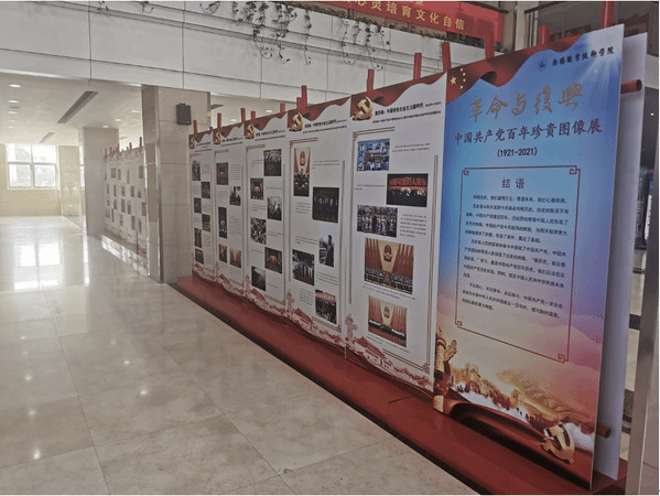 图书馆在第一借阅室、一楼大厅,开设了红色经典专题书架、革命与复兴-中国共产党百年珍贵图像展(1921-2021),同时在超星阅读瀑布屏上推送红色经典电子图书,期望通过党史学习教育专区这一空间,营造浓厚的党史学习氛围,引导师生党员坚定理想信念、筑牢初心使命;持续推动党史学习教育走深、走实、走心,引导党员和师生从党的辉煌历史中找寻初心、激励使命、厚植情怀,汲取政治力量、思想力量、奋进力量,把党史学习教育成果转化为工作和学习的强大动力。