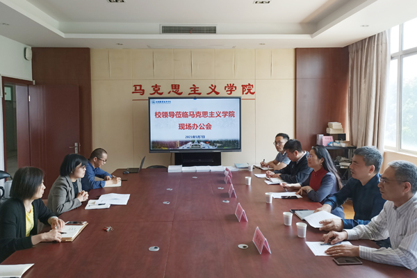 为进一步加强我校思想政治理论课建设,5月7日上午,校领导朱爱胜、周桂瑾、杨雪琴及党办校办、党委宣传部、人事处、教务处、财务处、资产处等相关部门负责人来到马克思主义学院,召开专题调研暨现场办公会,马克思主义学院党政负责人、各教研室主任参加调研座谈。