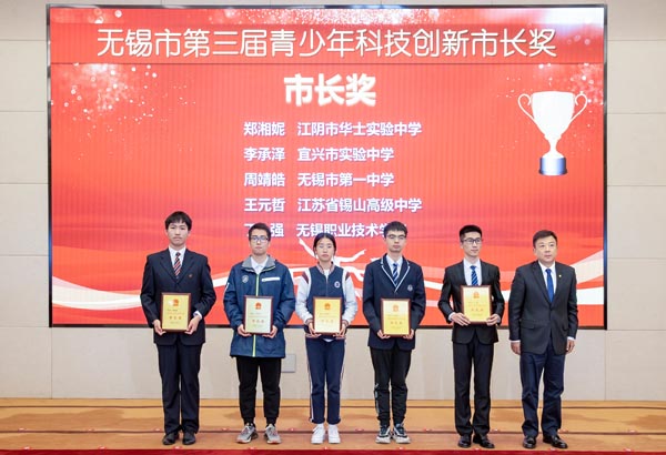 “无锡市青少年科技创新市长奖”是无锡市第一个以青少年为对象的政府科技类奖项,是全市青少年科技创新活动的最高荣誉奖。该奖项自2014年创设以来,其影响力、导向性、示范性持续增强,已成为全市推进科技创新教育的“品牌活动”、培育青少年优秀科技创新人才的“摇篮工程”。本次评出创新教育摇篮奖、市长奖、市长奖提名奖、科技辅导奖各5个。其中,对获得“市长奖”的学生给予2万元奖励。