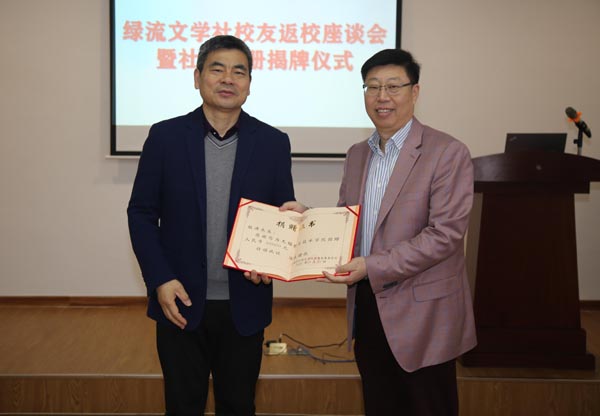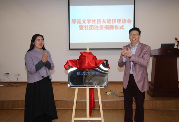 绿流文学社始建于1984年,在进入21世纪后,社团活动发生短暂中断。根据校友倡议和学生需要,绿流文学社的复社,有利于校园文化的传承创新和学生人文素养的进一步提高。经学校学生管理部门审定,本次绿流文学社注册为文化艺术类校级社团。杨雪琴副校长、校友殷涛先生共同为绿流文学社揭牌。会议现场,当年社团创建的发起人殷涛先生为支持绿流文学社的建设发展,专项捐助伍万元作为绿流文学社建设发展基金。