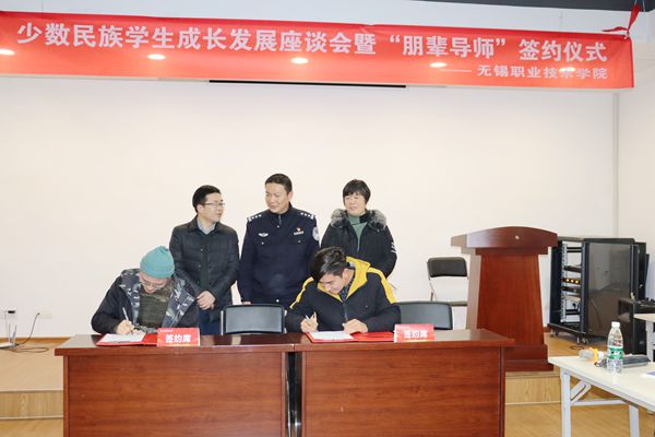 为全面了解我校少数民族学生学习、生活情况,进一步推进各民族学生相互交流、互帮互助,12月24日三点半,少数民族学生成长发展座谈会暨“朋辈导师”签约仪式在青智库举行,公安机关领导、学生处、保卫处领导、内派教师及各分院少数民族学生专项辅导员、学生代表50多人参会。会议由学生处副处长徐悦主持。