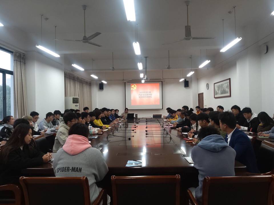 在全国认真学习贯彻党的十九届五中全会精神之际,2020年12月1日,汽车与交通学院2020年第二期入党积极分子培训班开班动员会在国交205会议室举行,汽车与交通学院党总书记郭再泉老师、学生党支部书记丁正荣老师、学生党支部宣传委员徐海楠老师、辅导员路晓丽老师以及57名入党积极分子参加,开班动员会由丁正荣老师主持。