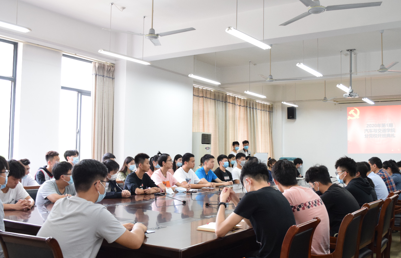 5月26日,汽车与交通学院2020年第一期入党积极分子培训班开班动员会在国交205会议室举行,汽车与交通学院党总书记郭再泉、学生党支部书记丁正荣、学生党支部宣传委员路晓丽、组织委员高娜娜老师、汽车与交通学院分团委书记李唯老师以及53名入党积极分子参加,动员会由丁正荣老师主持。