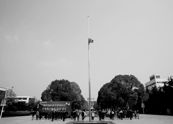4月4日,学校降下半旗,表达对抗击新冠肺炎疫情斗争牺牲烈士和逝世同胞的深切哀悼。上午10时,学校在国旗下举行哀悼活动,伴随防空警报一起,向新冠肺炎疫情牺牲烈士和逝世同胞默哀3分钟。杨雪琴副校长,党校办、团委、学生处、保卫处等部门有关人员及在校生等80余人参加活动。
