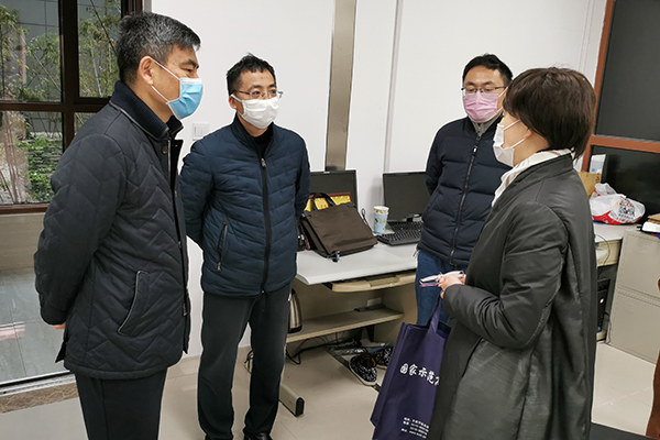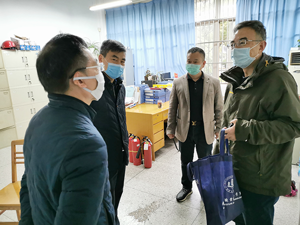 3月9日、10日,校党委书记朱爱胜、校长龚方红亲切看望在新学期疫情防控期到校值岗的工作人员。