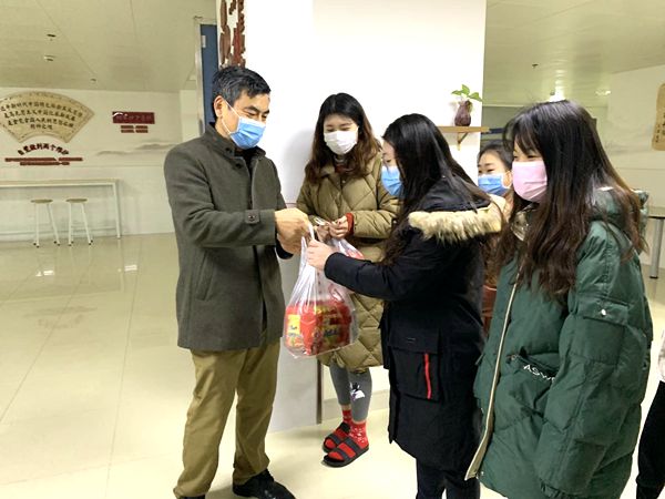 2月8日,农历传统元宵佳节,党委书记朱爱胜、校长龚方红、副校长强伟纲在学工、国教、校办等部门相关人员陪同下,到学生宿舍看望并慰问了疫情防控期间留在学校的本专科生和留学生,为他们送上节日的祝福,同时就疫情防控工作进行指导。