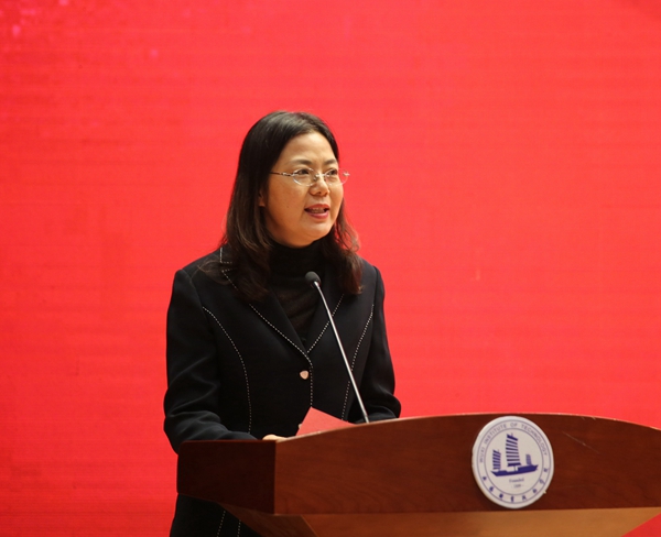 严健媛副秘书长代表无锡市人民政府向无锡职院全体师生员工表示诚挚祝贺,感谢我校对无锡教育事业发展和经济社会发展作出的积极贡献,并希望学校以勇于担当、只争朝夕的精神,抢抓机遇、乘势而上,承担起引领新时代职业教育高质量发展的使命职责,改革创新、提质升级,早日把学校建设成高水平应用技术大学,为无锡城市发展和产业转型升级作出更大贡献。