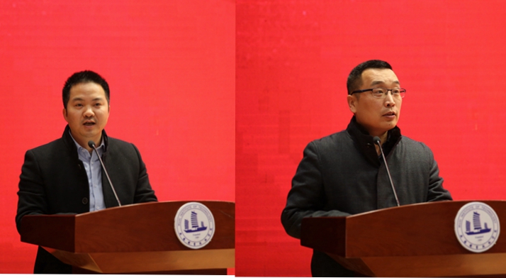 数控技术专业群建设负责人王骏、物联网应用技术专业群建设负责人蔡建军分别作了表态发言,承诺2大专业群将秉承“敢闯、敢创、敢为先”的精神,不断创新,勇于实践,发挥示范引领作用,保质保量按期完成专业群各项建设任务。