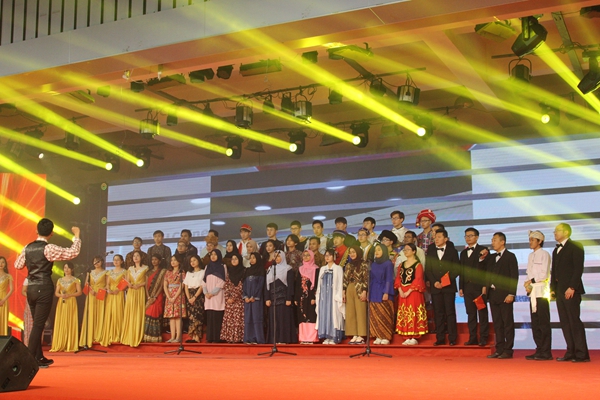 演出之前,校党委书记朱爱胜代表学校党委和行政向全校师生员工致新年贺词。朱爱胜指出,2019年是学校事业发展极不平凡的一年,这一年学校双喜临门,既迎来了建校60周年,又成功入选全国前10名高水平学校建设单位,学校各项事业发展呈现新态势新局面。