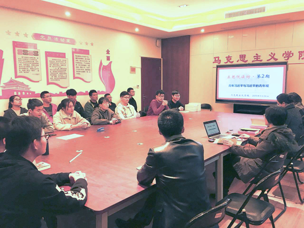 11月26日下午,在明德楼A-315会议室,马克思主义学院组织了第二期“正思悦读坊”经典阅读活动,本期主题是“青年习近平与习近平的青年观”,主讲为江苏省高校“青智库”建设指导老师、无锡市青年大学生学习行动导师、我校马克思主义学院院长周春兰博士,互动嘉宾为马克思主义学院赵后起、汪少彬、赵淑华、沈小娟等老师,我校“习近平新时代中国特色社会主义思想青年学社”成员和其他自愿报名的同学参加了本次活动。