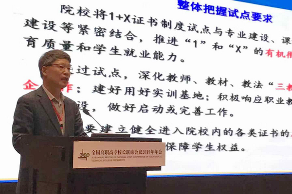 11月22至23日,我校校长龚方红、党委副书记周桂瑾出席了在重庆召开的全国高职高专校长联席会议2019年年会。教育部、财政部、重庆市人民政府及18个省级教育行政部门,14家社会团体、研究机构和行业组织以及20余家中央和地方媒体,520多所高职院校,共1500余名代表参加本次会议。教育部职业教育与成人教育司司长陈子季、副司长谢俐出席大会并发表了讲话。全国高职高专校长联席会议主席董刚主持会议。