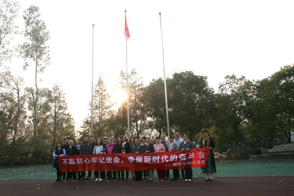 升旗仪式结束后,财经学院教师党员和学院学生入党积极分子集合在国旗下,齐声合唱《我和我的祖国》。“我和我的祖国,一刻也不能分割……”歌声充满了师生对祖国的热爱之情,传达着大家对祖国未来美好的期待。