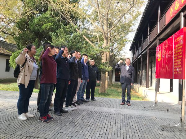 11月2日上午,全体党员参观了位于启东市东南中学校内的抗日军政大学第九分校纪念馆。在讲解员的带领下,大家参观了抗大九分校纪念馆,一幅幅历史图片和一件件实物真实地再现了当年红色革命者的大无畏英雄感人事迹,让每一位党员重温了党的光辉历史和革命斗争历程。接着,党员同志们面对鲜红的党旗,在周书记的带领下举行了宣誓仪式,重温了入党誓词。