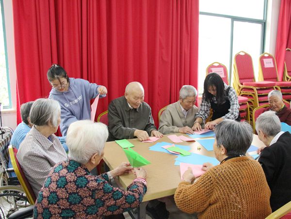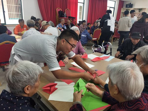 本次活动的主题是“颐养送温情”敬老爱老,共分互动折纸、老歌传唱、水墨丹青三个环节。在互动折纸环节,志愿者两两一组教老人们折纸,经验丰富的老人将灯笼、青蛙、飞机、帽子等等折的惟妙惟肖;在老歌传颂游戏环节更是让志愿者们叹为观止,从一开始的猜歌名游戏到后面直接是老人们的“个人演唱会”;在水墨丹青环节,志愿者们与老人们挥毫泼墨,在宣纸上切磋中华传统文化技艺。