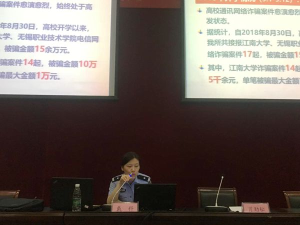 本次安全教育讲座邀请了滨湖分局、雪浪派出所警官和保卫处主讲老师共同授课。以适应大学生活、理智明辨是非为主线,从国家安全、防火安全、财产安全、交通安全、防网络诈骗、防校园贷、防非法传销等多个方面进行了详细生动的解读。指出大学期间应该注意的安全问题、避免意外发生的方法和紧急情况下需采取的措施。通过高校典型案例的教育使广大新生对身边的安全问题有了直观的认识。