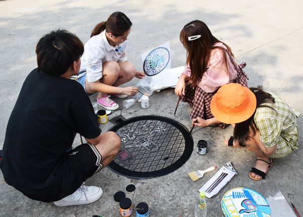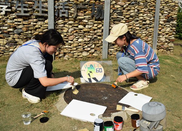 为喜迎校庆,美化校园环境。9月24日下午,我校蠡溪画社和艺术学院广告班的同学们在团委曹亮老师的组织下,在商业街附近开展了校园彩绘井盖涂鸦活动。