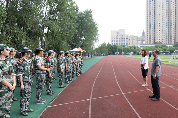 9月12日下午,外语与旅游学院党总支书记江铭,院长杨丽,院长助理徐优明一行前往学校田径场上,看望正在烈日下军训的教官和新生。