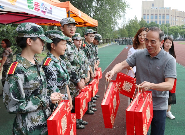 学院领导向正在辛苦训练的教官和新生们表示了诚挚的中秋慰问和衷心的节日祝福,并鼓励新生们努力培养吃苦耐劳的精神,不畏困难,坚持完成大学第一课。