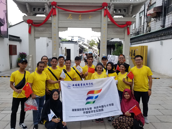 近日,我校28名外国留学生志愿者开展了以“凝聚国际爱华友情,共庆中国七十华诞”为主题的暑期社会实践活动,通过走访调研,留学生志愿者们深入了解新中国建立70年的非凡成就,加强了“知华·爱华·友华”情感,促进了“一带一路”跨文化交流与民心相通。