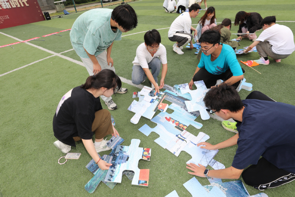 本次活动以生动活泼的奔跑打卡知识竞赛形式引领青年学生重温百年党史。活动设立“开天辟地救国篇”“改天换地兴国篇”“翻天覆地富国篇”“惊天动地强国篇”四个站点,参赛选手同时从场地中央出发,奔赴各站点比拼。竞赛以回答正确率为主要计分依据,同时兼顾组织配合速度与奔跑速度。打卡挑战完毕后,选手前往组合拼图处完成大型拼图,当一幅壮阔的跨越海陆空的新时代成就画卷在所有人手中最终呈现时,在场的师生无不感到自豪和光荣。经过激烈比拼,物联网学院、机械学院代表队荣获一等奖,控制学院、财经学院、设计学院、管理学院代表队荣获二等奖,爱尔兰学院、集成电路学院、文旅学院、汽车学院、双创学院荣获三等奖。