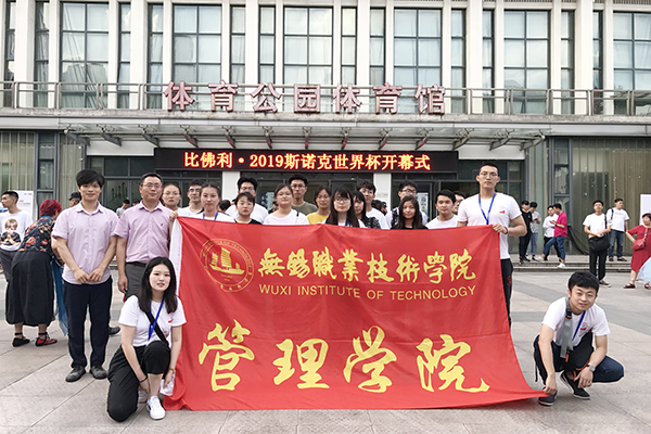 6月24日晚,“比佛利·2019斯诺克世界杯”在无锡体育公园体育馆拉开帷幕。应共建单位无锡市体育产业发展集团邀请,管理学院共有8位学生担任赛事志愿者,当晚,管理学院负责人和相关师生受邀到现场观摩开幕式。