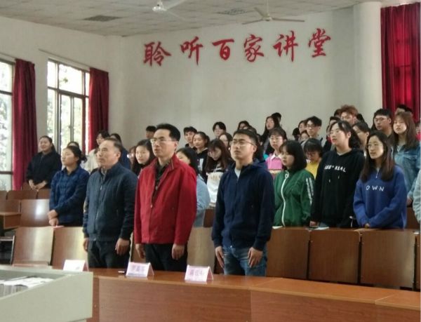 4月16日,外语与旅游学院、艺术与设计学院在博学楼101共同举行了2019年第1期分党校开班典礼,外语与旅游学院党总支书记江铭老师、艺术与设计学院党总支书记罗嘉军老师、艺术与设计学院蒋红中老师、外语与旅游学院范洪老师以及106名培训学员出席了开班典礼。开班典礼由范洪老师主持。