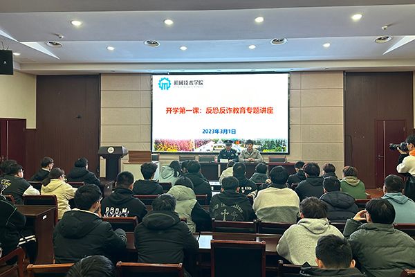 为进一步贯彻落实党的二十大精神和习近平总书记关于总体国家安全观的重要指示精神,树立安全发展理念,坚持素质教育目标,牢固树立安全第一的思想,增强安全教育的紧迫感和责任感,不断提高学生的防恐防邪、反诈意识,营造平安、和谐、稳定的校园环境,3月1日,机械技术学院邀请无锡市公安局滨湖分局雪浪派出所民警闵鑫宇来校开展“开学第一课:反恐反诈教育专题讲座”宣讲活动,这也是新学期第一次集体安全教育课。