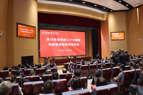 11月18日,我校举行“学习贯彻党的二十大精神”市委宣讲团宣讲报告会。市委宣讲团成员、市政协主席项雪龙作专题宣讲报告。市政协秘书长钱文琴等相关领导参加活动。