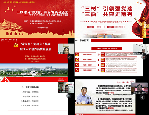 论坛上,6家联盟单位还就党建工作进行交流展示,交流展示环节由联盟副理事长、常州机电职业技术学院党委书记沈琳主持。苏州工艺美术职业技术学院视觉传达学院党总支书记朱效迅、星空app官网机械技术学院党总支书记王骏、常州信息职业技术学院电子工程学院党总支书记杨红燕、无锡商业职业技术学院马克思主义学院执行院长陈洁瑾、常州工业职业技术学院党委组织部部长檀祝平、无锡机电高等职业技术学校党委书记贾厚林等代表分别围绕《党建引领、设计赋能,助力美丽乡村建设》《党建赋能,助力高水平专业群建设》《“课长制”党建育人模式 推动人才培养高质量发展》《五维融合增效能,服务发展筑堡垒——“双带头人”工作室“党建+思政”创新工作实践》《党建铺就高校高质量发展路》《“三树”引领强党建 “三融”共建走前列》进行了交流展示。