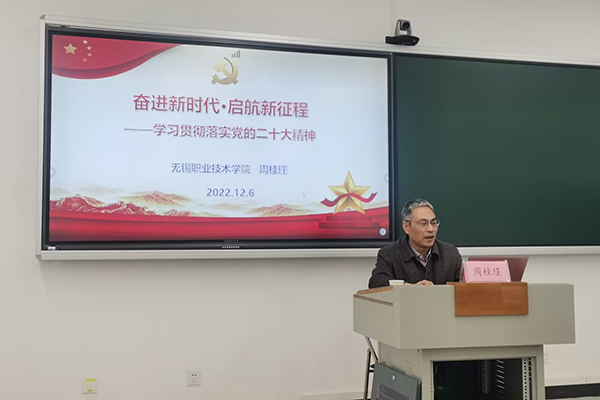 周桂瑾从深刻认识党的二十大的重大意义、深刻把握党的二十大报告的精髓要义、深刻领会党的二十大精神办好职业教育等三个方面,深入阐释了党的二十大主题中蕴含的丰富内涵、全面深刻把握习近平新时代中国特色社会主义思想以及如何实现职业教育高质量发展等内容。