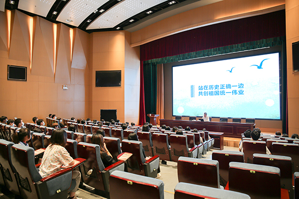 校党委书记朱爱胜和校长龚方红以“站在历史正确一边,共创祖国统一伟业”为专题分别给物流专业和市场营销等专业同学阐释台湾问题,从历史根源、“台独的”本质和危害、外部势力干涉、两岸融合发展的前景等四个方面讲述了台湾问题的长期性、复杂性和艰巨性,引导学生深刻认识维护国家主权、发展利益的重要意义,勉励同学们发扬艰苦奋斗精神,坚定信心,不懈努力,共担民族大义,共促祖国统一。
