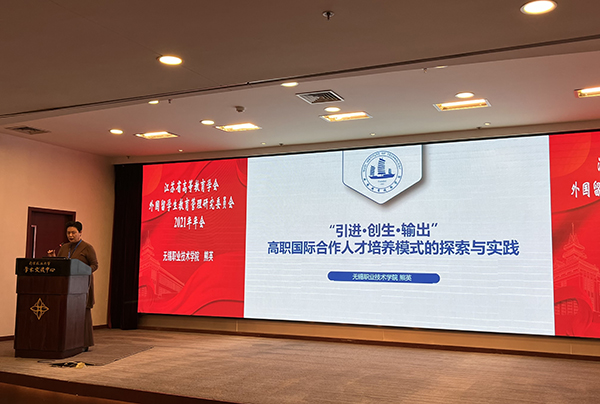 国际教育学院院长熊英教授以《“引进·创生·输出”高职国际合作人才培养模式的探索与实践》为题,介绍了学校以“创生”为核心,“引进输出双向共进”为重点,构建“引进·创生·输出”国际合作人才培养新模式,受到了全体与会人员的好评。
