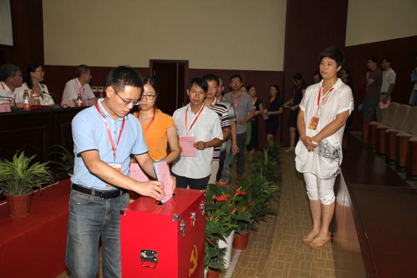 代表们进行投票