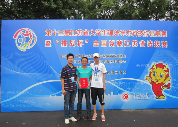 5月24日至26日,江苏省第十三届大学生课外学术科技作品竞赛暨“挑战杯”全国竞赛江苏省选拔赛在常州大学举行,我校推荐的《基于GSM网络的无线电子台签》入围答辩,并最终获得高职组二等奖。