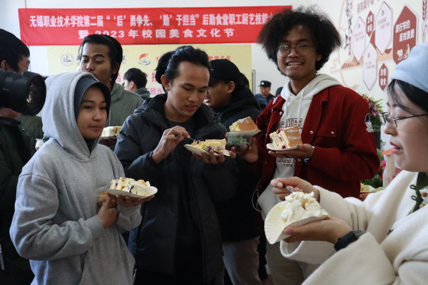 杨雪琴宣布活动开幕。开幕式结束后,首先进行校园美食文化节。活动现场师生人头攒动,热闹非凡,各食堂的拿手菜系吸引了广大师生的目光。有风味各异的创新菜、网红菜等美味佳肴,有展示刀工技艺的水果雕花,也有同学们爱吃的煎炸美食、创意面点、风味特色小吃等等。各色美食应有尽有,让人应接不暇,为广大师生奉上了一场盛大的美食大餐。