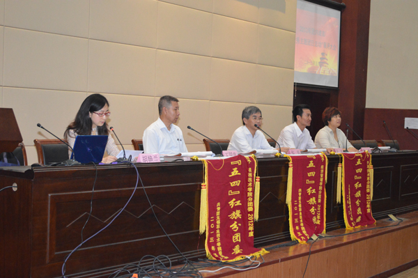 会上公布2013年了五四评优表彰决定,机械技术学院分团委等3个集体获“五四红旗分团委”称号,材料11201班等34个团支部荣获“五四红旗团支部”荣誉称号,单双红等82名同学获评“优秀共青团干部”,方京琼等357名同学获评“优秀共青团员”,余爱华等4位老师荣获“教工优秀团干部”荣誉称号。“青马工程”训练营也于当天圆满结束,张轩铭等18名学员获优秀学员称号。