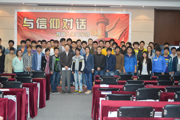 5月8日下午,校团委“与信仰对话——校园人生分享会”系列活动在国际交流中心二楼报告厅拉开帷幕,首场活动邀请了校长戴勇教授与机械技术学院50多名同学分享人生经历,勉励学子成长。