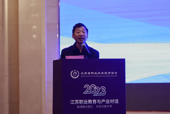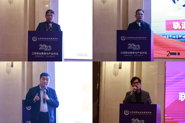 吉林工程技术师范学院职业技术教育研究院院长、《职业技术教育》杂志副总编张祺午做《从哪里来、到哪里去:中国职业教育产教融合的历史逻辑与发展图景》报告,阐述了职业教育产教融合的发展历程,分析了职业教育产教融合的发展逻辑,同时提出了新时代职业教育改革关键在于做好深化产教融合这份时代答卷;常州铁道高等职业技术学校教学管理部部长杜芬做《国家轨道交通装备行业产教融合共同体构建与实践》,杜部长分析了行业产教融合共同体的重大意义,并分享了首个国家行业产教融合共同体的建设经验;常州工业职业技术学院党委书记席海涛做《常州新能源汽车产教联合体体制机制的构建与实践》,阐述了“产教融合、科教融汇”的发展路径,分享了常州新能源产教联合体的创建历程、治理模式、运行机制;联想集团教育纵队总监郑裕民做《新算力推进职教数字化转型》的主题报告,介绍了联想的数字化企业产业实践,总结了联想校企合作的主要方案,最后分享了算力与数字化校园建设相关案例。