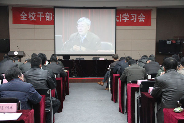 此次干部培训暨中心组(扩大)学习会以“迎接挑战,加快创新发展”为主题,党委书记朱爱胜在动员讲话中要求大家要充分认识加强和改进领导干部队伍水平的重要性,加强理论学习;要强化干部职能素质和执政能力的紧迫感和责任感,为学校的科学发展、创新发展、和谐发展谋求共识,增添动力,营造氛围。戴勇校长在讲话中要求广大干部结合学习内容深入思考,理论联系实际,解决现实工作中遇到的问题,切实提高自身素质,推动学校发展。