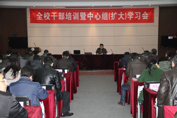 为提高领导干部综合素质和管理服务水平,进一步推动学校事业发展,新学期干部培训暨中心组(扩大)学习会于2月20日下午在国际交流中心二楼报告厅开班,全校副科级以上干部110多人参加了集中学习。