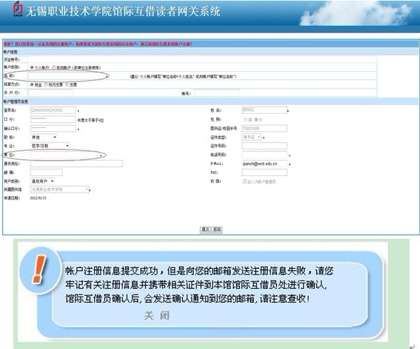注:此处注册提醒为CALIS未完善部分,提交申请后无须到图书馆进行确认,图书馆的工作人员在收到你的申请后,会及时为您确认注册信息,确认后即可使用馆际互借系统。