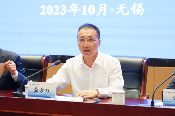 我校党委书记龚方红代表学校对与会嘉宾的到来表示欢迎。他表示,年度综合考核工作开展以来,学校高度重视,始终坚持党对学校工作的全面领导,以党建引领不放松,以综合考核为总抓手,淬炼政治责任担当,凝聚干事创业共识,提升办学水平和能力,不断优化细化考核工作指标体系。下一步将坚持以习近平新时代中国特色社会主义思想为指导,全面贯彻党的教育方针,全面落实省委、省政府关于综合考核和高校发展的部署要求,以此次推进会为契机,结合“双高”任务,锚定升本目标,一如既往做好党的建设和组织工作,做好高质量综合考核,以考促学、以考促评、以考促改、以考促进,以职业教育高质量发展为谱写“强富美高”江苏现代化建设新篇章做出新贡献。