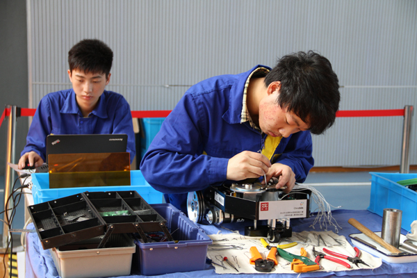 由省教育厅主办的2012年江苏省职业学校技能大赛机器人技术应用项目竞赛,4月28日在我校体育馆举行。来自南京、徐州、苏州、无锡、常州、镇江6个大市代表队的18名选手,参加了机器人装配和机器人运行两个环节的竞技。