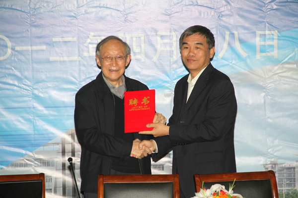 华坚副校长代表学校向杨叔子院士颁发客座教授聘书