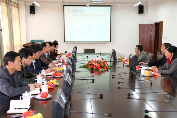 谈向群副书记向来访学校宾客简要介绍了我校沿革、办学现状、示范校建设等情况,随后,双方就基础设施、实验实训设备、校园文化、校史馆建设等进行交流。(郁飞)