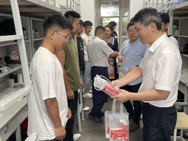 奚茂龙重点走访了2023级机械技术学院新生宿舍,调研了宿舍设施条件和迎新准备情况,与同学们聊家常,谈心交流,还送上了迎新大礼包。