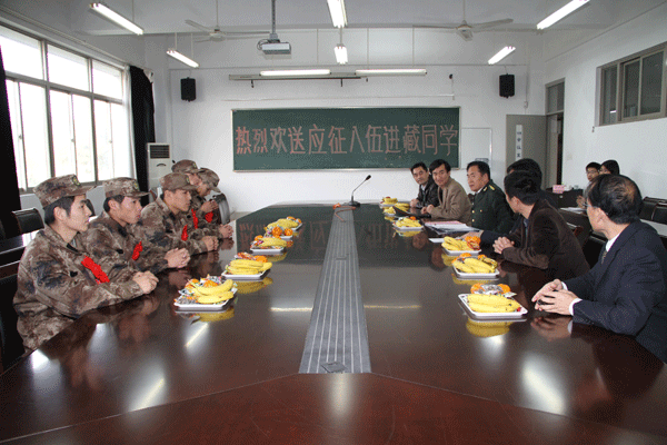 今年征兵工作开展以来,我校共有58位同学报名,其中8人主动要求进藏服役,最终来自机电学院、机械学院和汽车系的李亚运、李文昌、高亚飞、张银平和曹景5名同学通过了严格的身体检查和政审环节,即将奔赴雪域高原,驻守边疆。(党办 未言)
