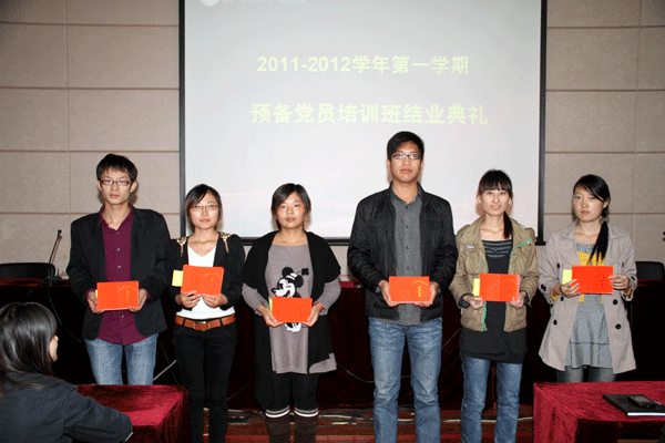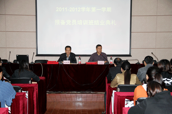 10月25日下午,我校2011-2012学年第一期预备党员培训班结业典礼在国际交流中心二楼报告厅举行,党委副书记谈向群,党委委员、组织部部长王国忠,各院系总支书记、辅导员及培训班学员参加了结业典礼。