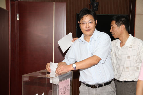 当天下午3时,选举大会在雄壮的国际歌声中开幕。院党委副书记、院长戴勇宣读《中共无锡市委关于选举产生无锡市第十二次党代会代表的通知》后,院党委委员、党办主任王国忠先后向大会报告了学院确定出席市第十二次党代会代表候选人预备人选的情况,介绍了朱爱胜、郭再泉两名候选人预备人选的简要情况,提出了《学院出席市十二次党代会代表选举大会选举办法》(草案)及监票人名单。接着,大会采取举手表决方式一致通过了学院出席市十二次党代会代表候选人预备名单、选举办法及监票人名单。随后,到会的104名党员代表以无记名投票方式,选举我院出席无锡市第十二次党代会代表。经计票、监票,最终朱爱胜同志以高票当选为我院出席市第十二次党代会的代表。(党办)
